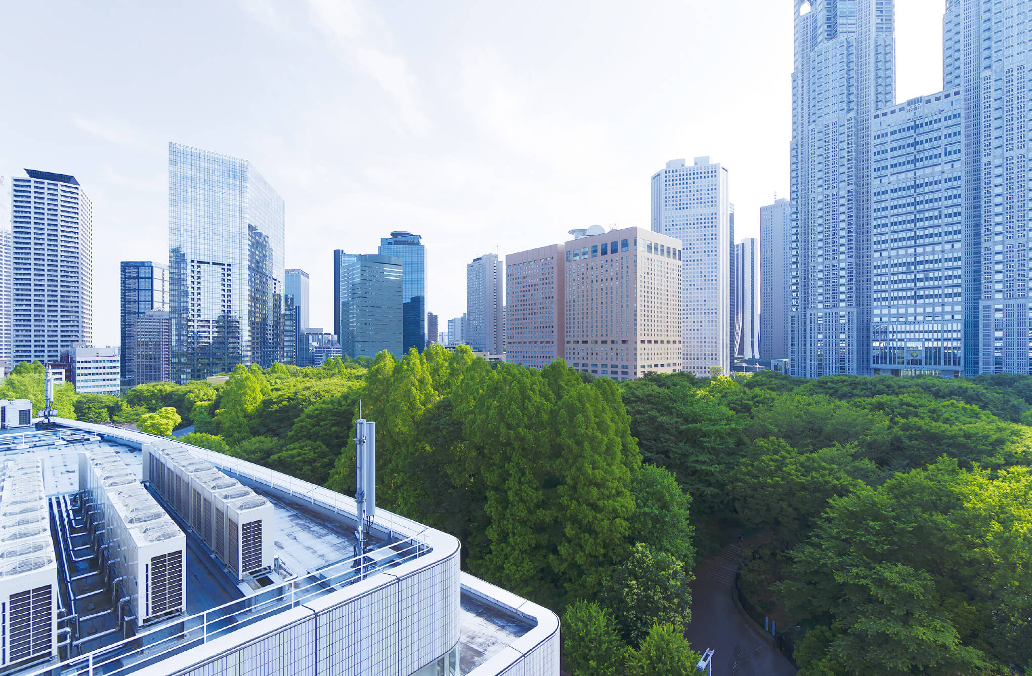 平均的なオフィスビルにおいて、消費電力の半分近くを占めている空調設備。老朽化した中央熱源方式の空調システムをビルマルチ空調システムに変更。さらにきめ細かなコントロールで、ビル空調全体の省エネを図ります。